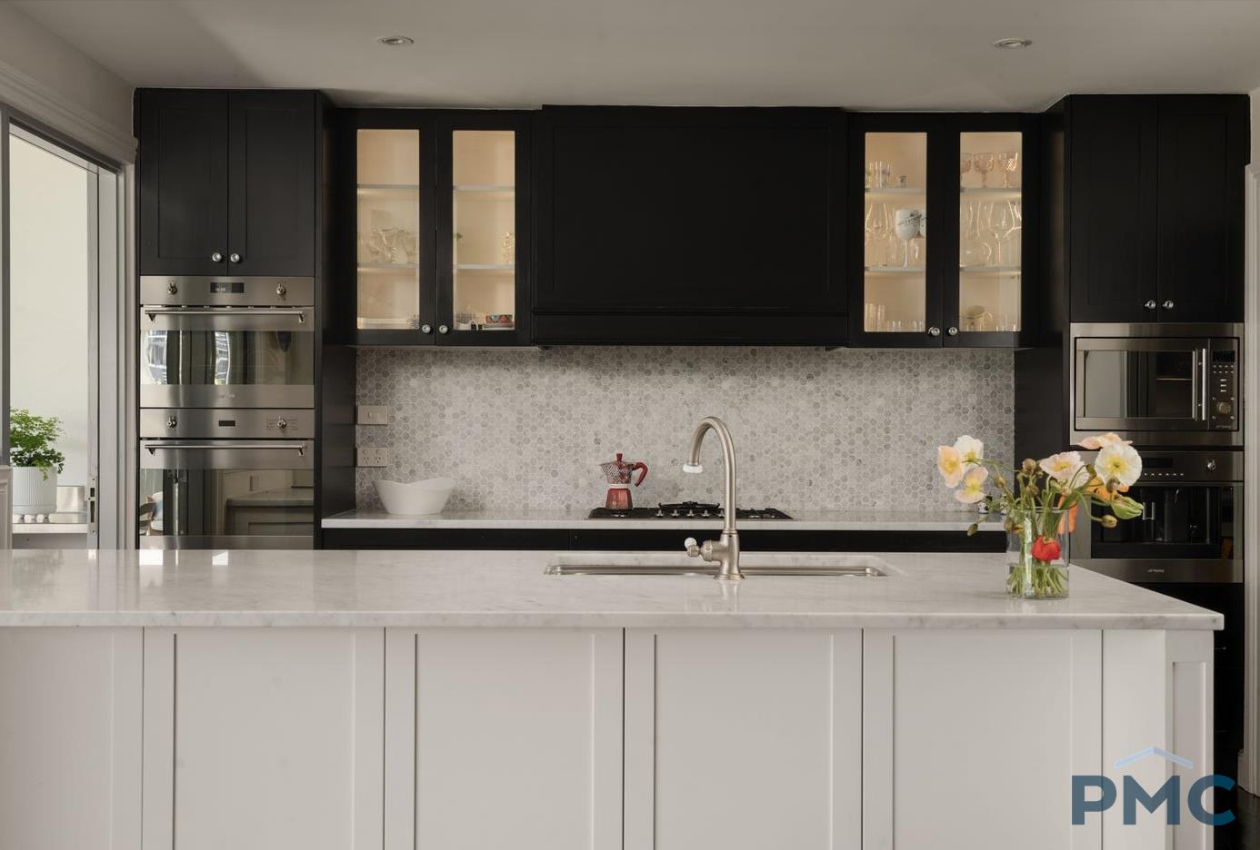 • Elegant light and bright modern kitchen, with marble benchtop, walk in pantry, breakfast bar, sleek appliances, dishwasher, gas cooktop and plenty of storage and bench space.