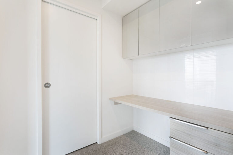 – High tech study with great storage adjoining open plan living area